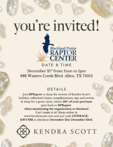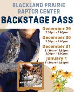 Blackland Prairie Raptor Center Backstage Pass – Monday 12/29/25