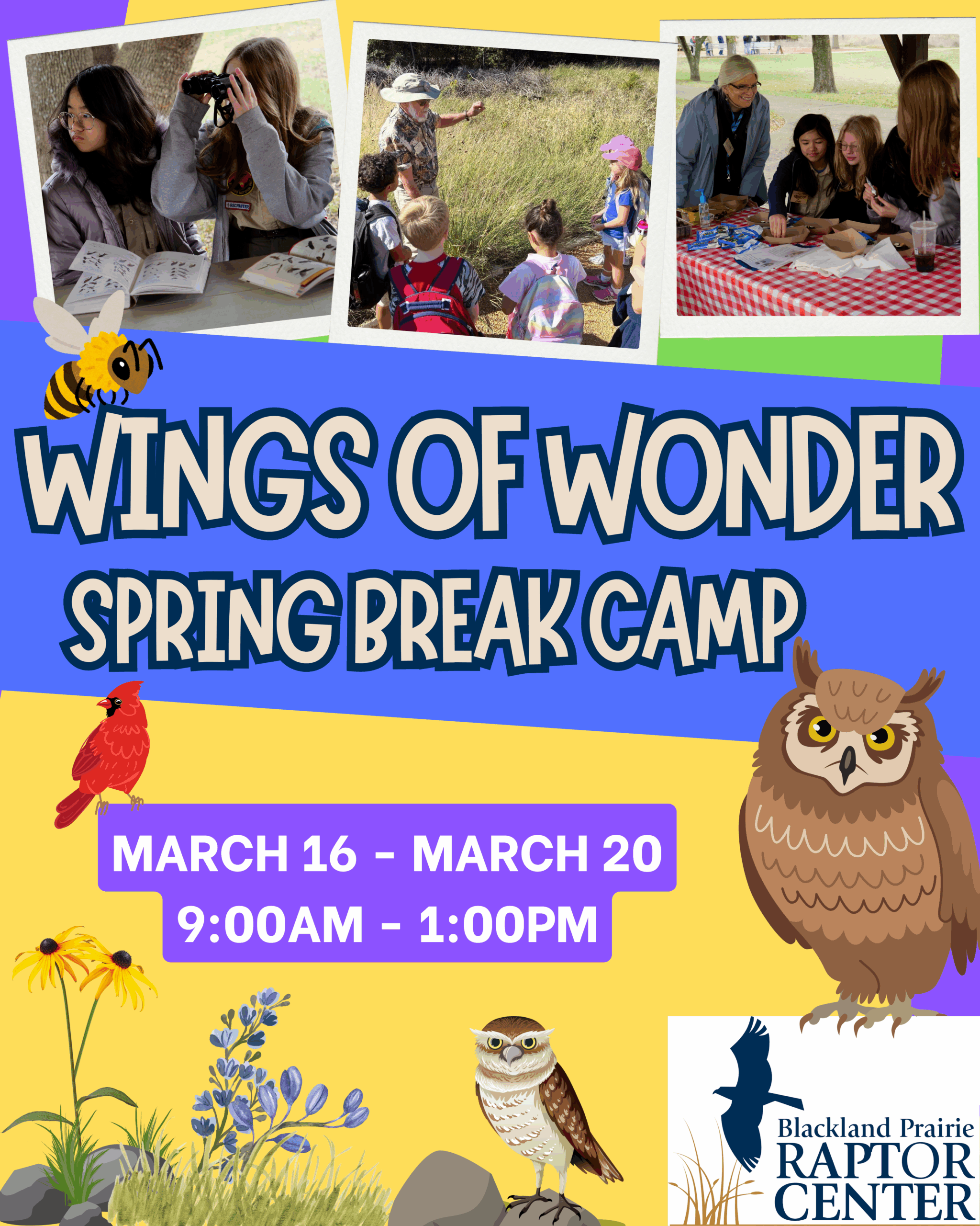 Turn spring break into an exciting outdoor adventure filled with wildlife, discovery, and hands-on fun at Wings of Wonder Spring Break Camp! Wings of Wonder Spring Break Camp puts kids right in the middle of the action! Campers will explore the outdoors, get up-close to birds of prey, and dive into creative, curiosity-sparking activities – all while having an absolute blast.